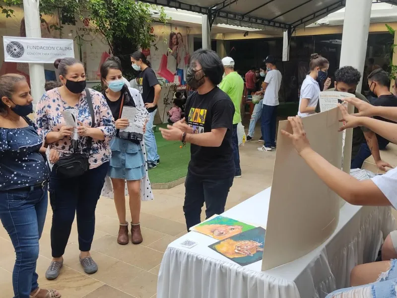 La inauguración del Mes de los Murciélagos contó con una exposición fotográfica y con la divulgación de la cartilla de los Murciélagos de Cali y sus Alrededores (disponible aquí), que permitieron dar a conocer la diversidad de estas especies. Además, durante el evento los estudiantes impartieron charlas y animaron un conjunto de actividades lúdicas que atrajeron a niños y adultos, acercando a personas de todas las edades al conocimiento de los murciélagos. Se realizaron sesiones de arte en origami y dibujo, donde los participantes pudieron aprender dónde viven y de qué se alimentan los murciélagos. También se hicieron juegos que permitían aprender sobre el papel de los murciélagos como agentes dispersiones de semillas y controladores de plagas. De todas las actividades recreativas, ponle la hoja nasal al murciélago y arma el rompecabezas fueron las que más visitantes recibieron. Además, se estableció una zona donde todos los participantes podían dejar mensajes sobre su experiencia en el evento. En general niños y adultos mostraron gran entusiasmo por aprender sobre los murciélagos y participar en las actividades.