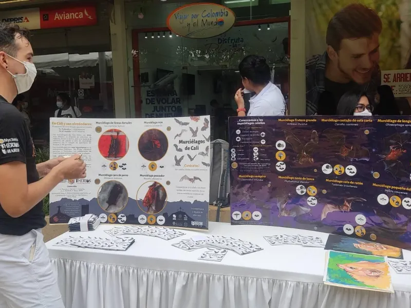 Estudiantes javerianos del Semillero de Ecología y Evolución de Murciélagos Nycteris, que dirige el profesor Danny Rojas, inauguraron el Mes de los Murciélagos, en una jornada vespertina que transcurrió durante la tarde del sábado 3 de octubre., y en la que también participaron estudiantes de los semilleros de Mastozoología de la Universidad del Valle (semillero «Therios») y de la Universidad ICESI (semillero «Hartii»). La actividad se realizó en Unicentro y estuvo apoyada también por la Fundación Calima y el Programa para la Conservación de los Murciélagos de Colombia, que hace parte de la Red Latinoamericana y del Caribe para la Conservación de los Murciélagos.