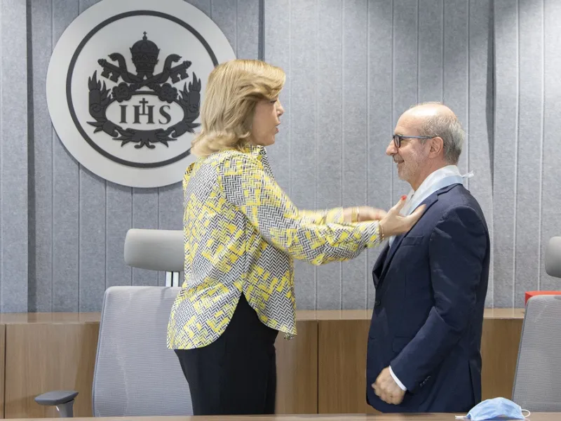 La gobernadora del Valle, Clara Luz Roldán González, confirió este jueves, 15 de septiembre, la Medalla del Orden al Mérito Vallecaucano al padre rector, Luis Felipe Gómez Restrepo, S.J., por su aporte desde la academia en la educación superior en la región. La ceremonia se realizó con la presencia de las directivas de la Javeriana Cali y el equipo de trabajo de la mandataria departamental.